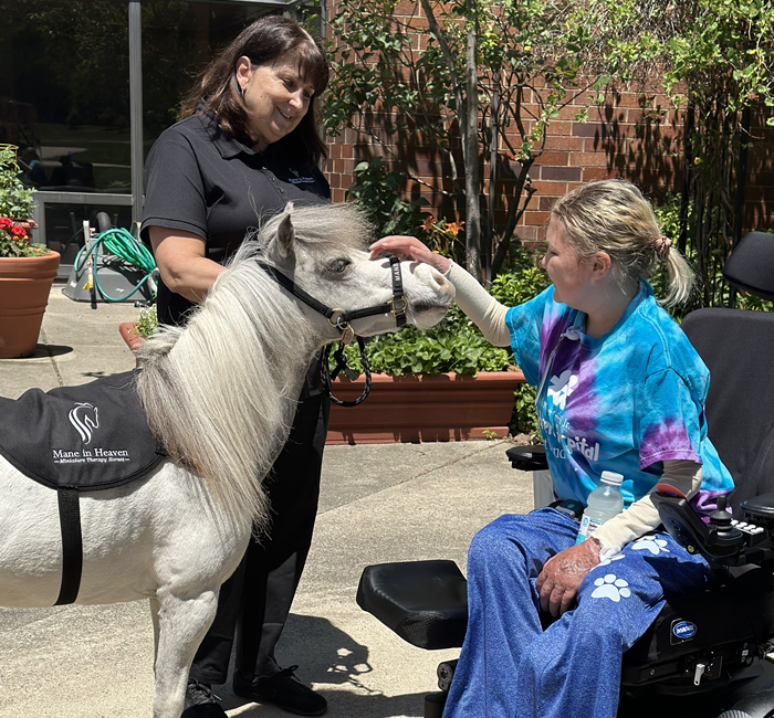 Our programs provide education, connection, and engagement with Mane In Heaven Miniature Therapy Horses. We serve a variety of people of all different abilities and ages providing time to pet, hug, groom, walk, and make memorable connections with our therapy horses. Studies have shown that animal-assisted activities and therapy visits provide physical, mental and emotional fulfillment.